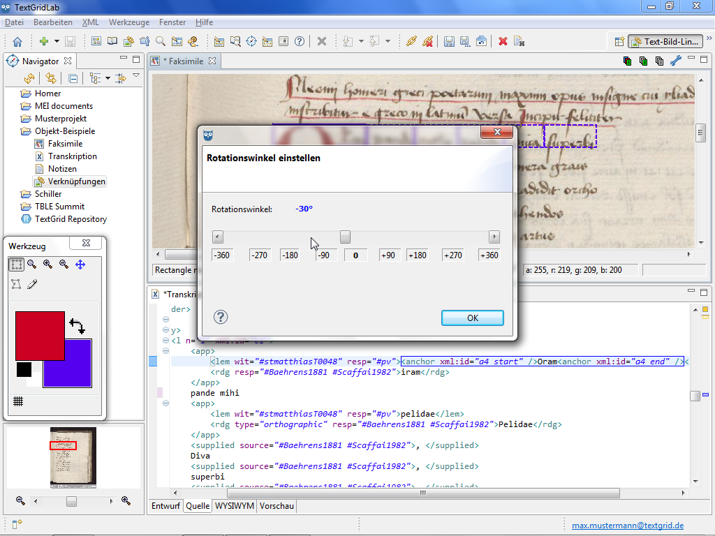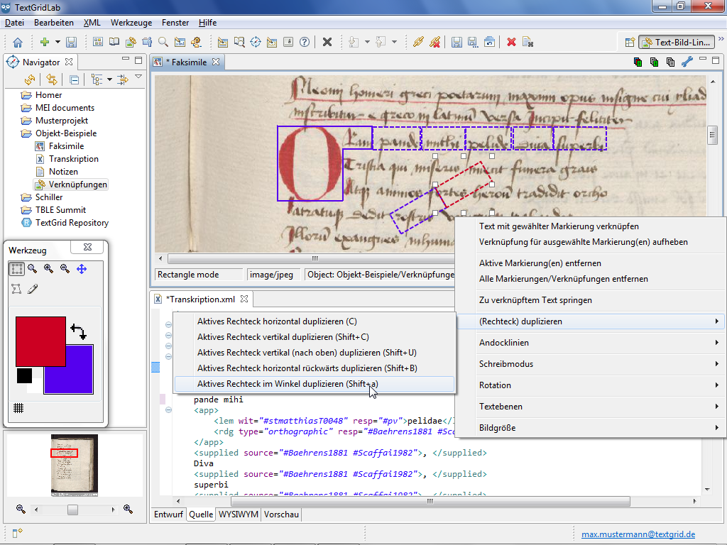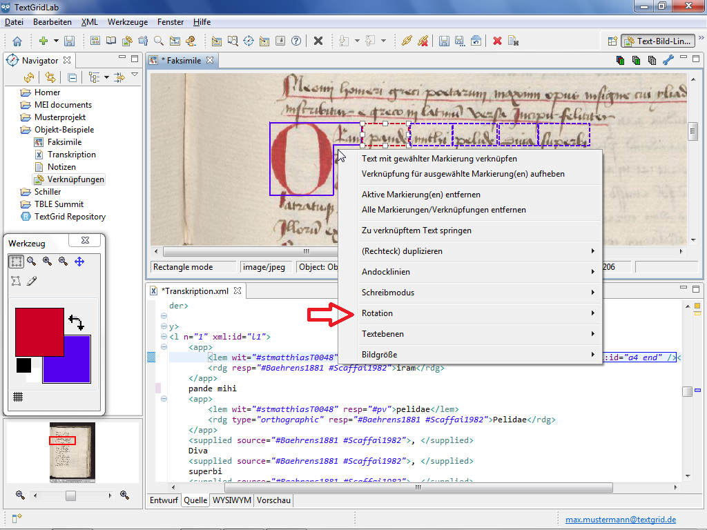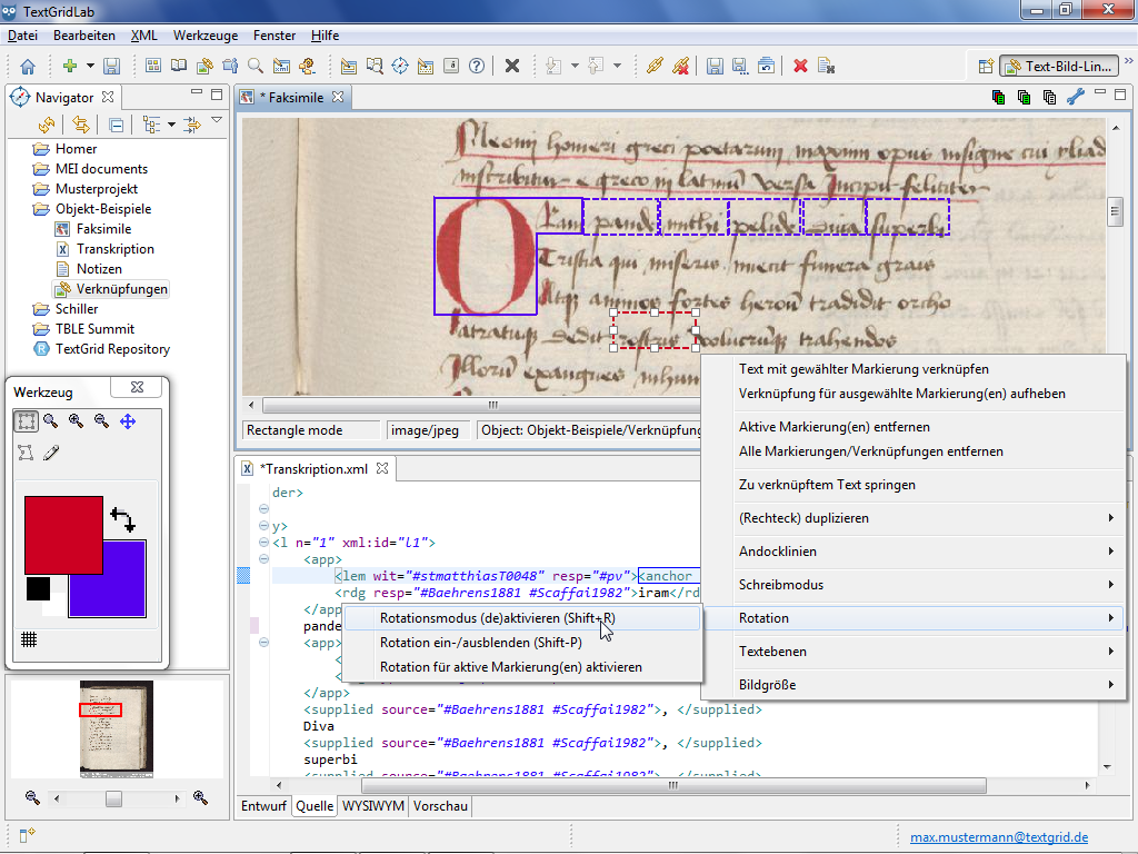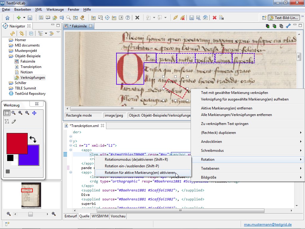 As for numerous use cases rectangular shapes are not only needed parallel to the screen the Text Image Link Editor allows you to rotate rectangular shapes. The rotation functions are only provided in the context menu of the Image View, if you have selected at least one rectangular shape.
