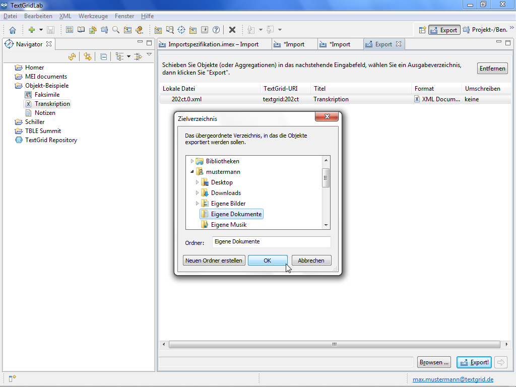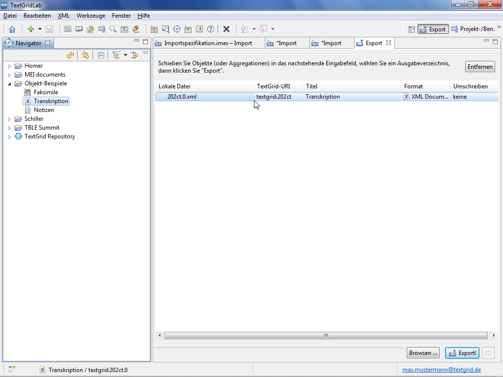 With the Export Tool you can save data including their metadata from the TextGrid Repository to a local drive.