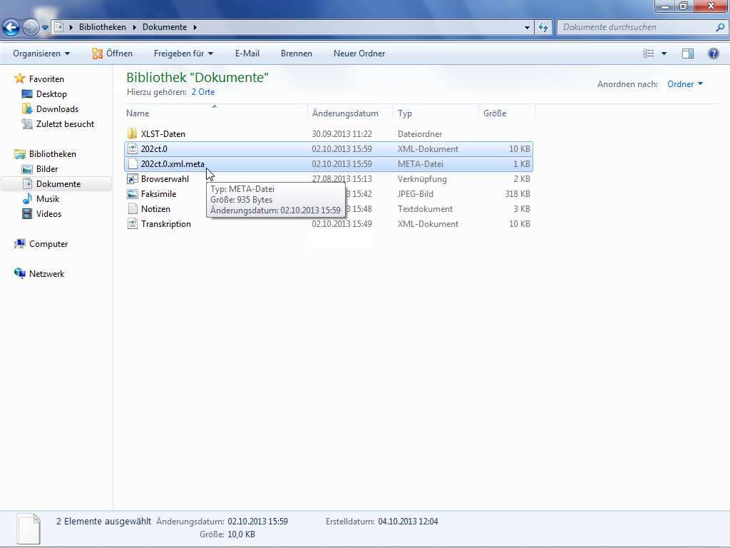 The Export Tool creates two files for every Object when exporting them. Together with the file containing the content of the exported Object a second file containing the corresponding metadata is save to the local drive.